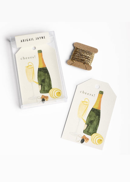 Beautiful hand-painted original watercolor champagne prints. Perfect for holiday gifts and to hang on a bottle of champagne! | 2.5" x 4.25" Set of 8 tags with gold string...