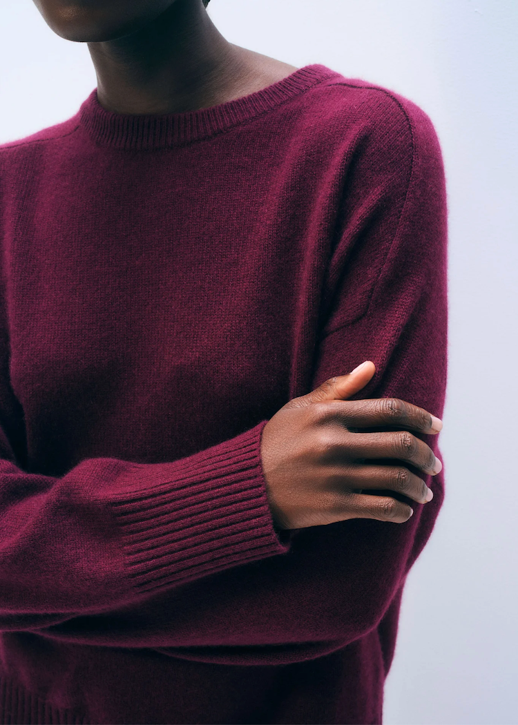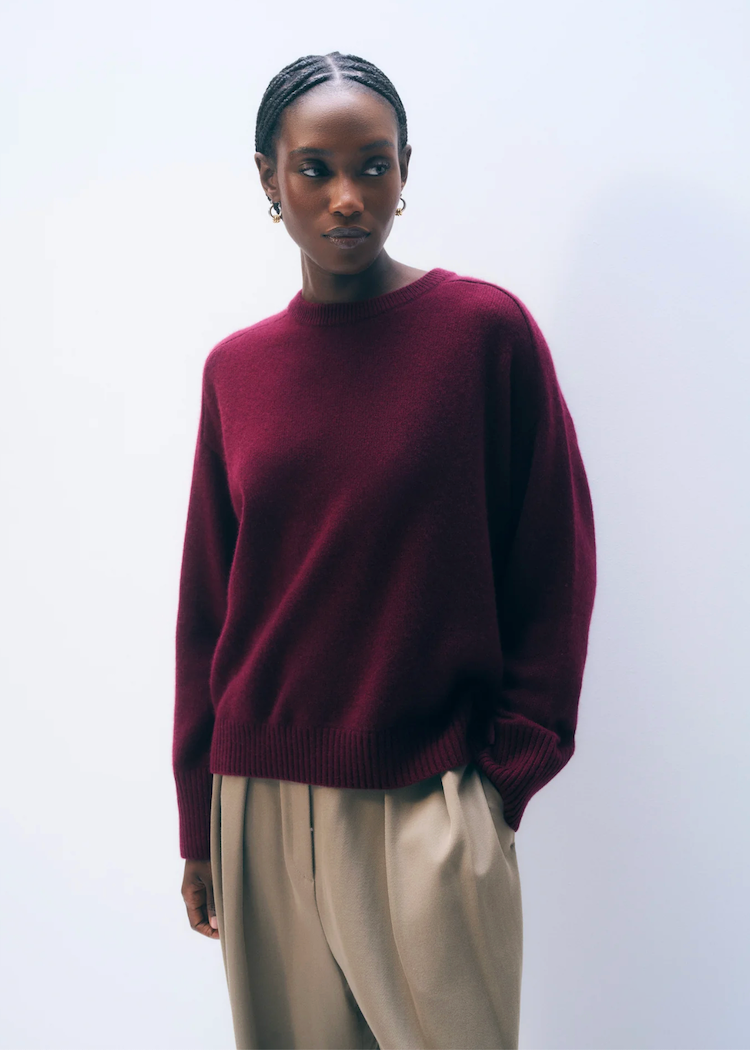 An easy, oversized crewneck crafted from pure cashmere. Saddle shoulders and a subtle back seam elevate its relaxed silhouette, ensuring effortless wear.