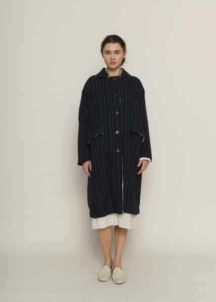 Jacket made from organic cotton blended with wool in a herringbone weave, cut with an effortless silhouette and swing through the body to the curved hemline. With a high break...