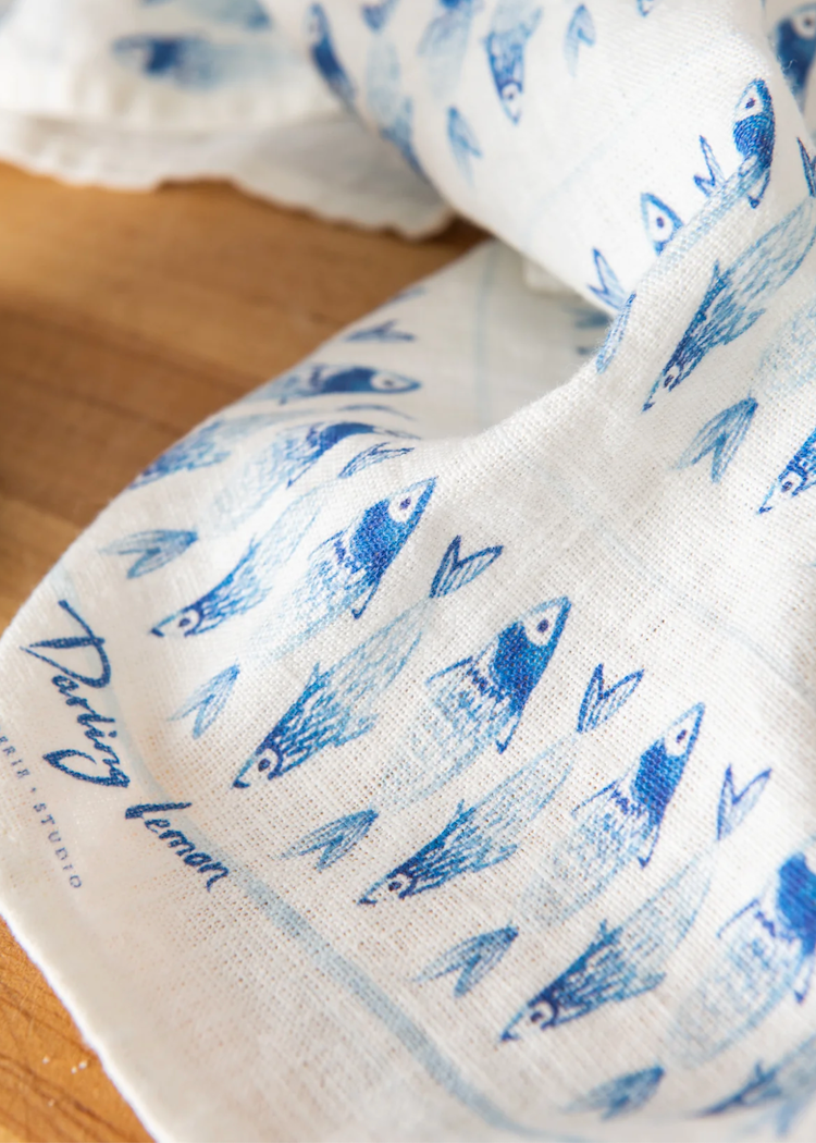 Inspired by the artistic design of sardines. Material | 100% Linen Size | 8" x 8" Care | Wash on gentle machine cycle Set of 4 napkins Designed in Savannah,...