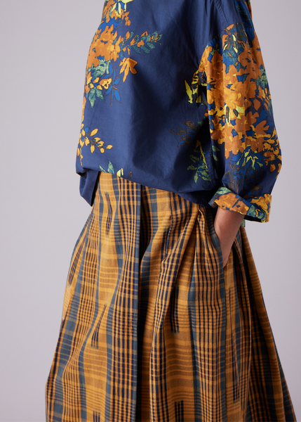 Inspired by traditional kilt styles, this check wrap skirt is made from space-dyed and hand-woven cotton. With stitched-down traversing knife pleats at the front and back. Finished with side pockets....