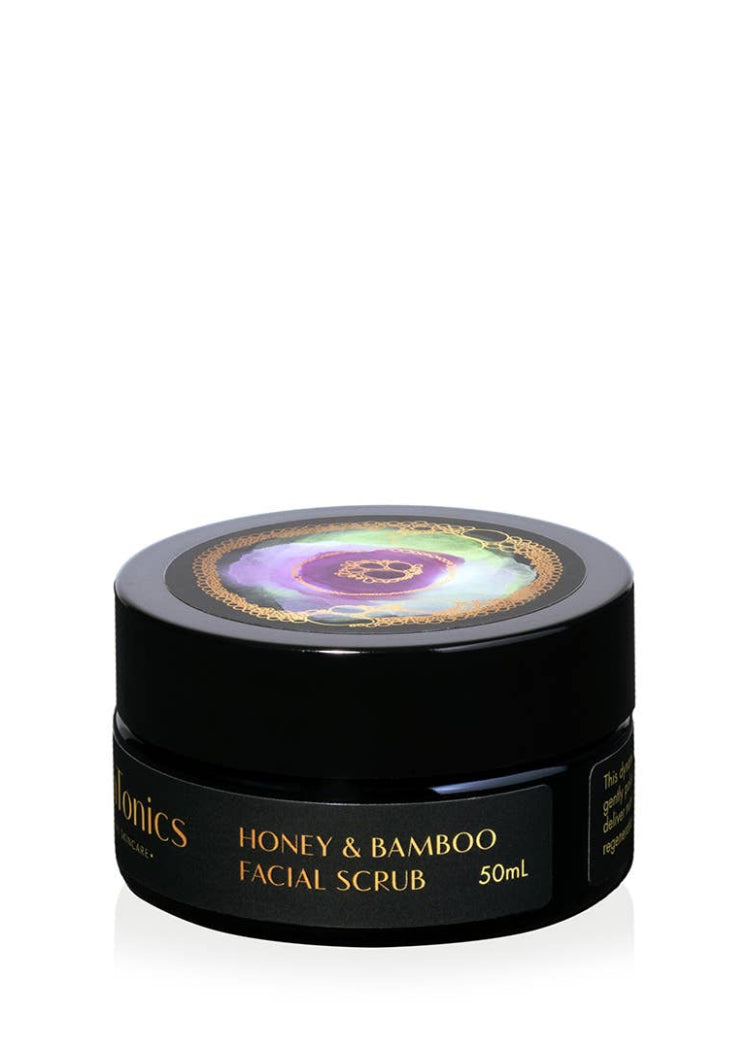The Honey + Bamboo Facial Scrub is an exfoliating treatment and mask all in one, designed to revive dull, lackluster skin. Known as a "facial-in-a-jar," this nourishing formula envelops skin in creamy, botanical-infused honey, rich in prebiotics to support a healthy microbiome.