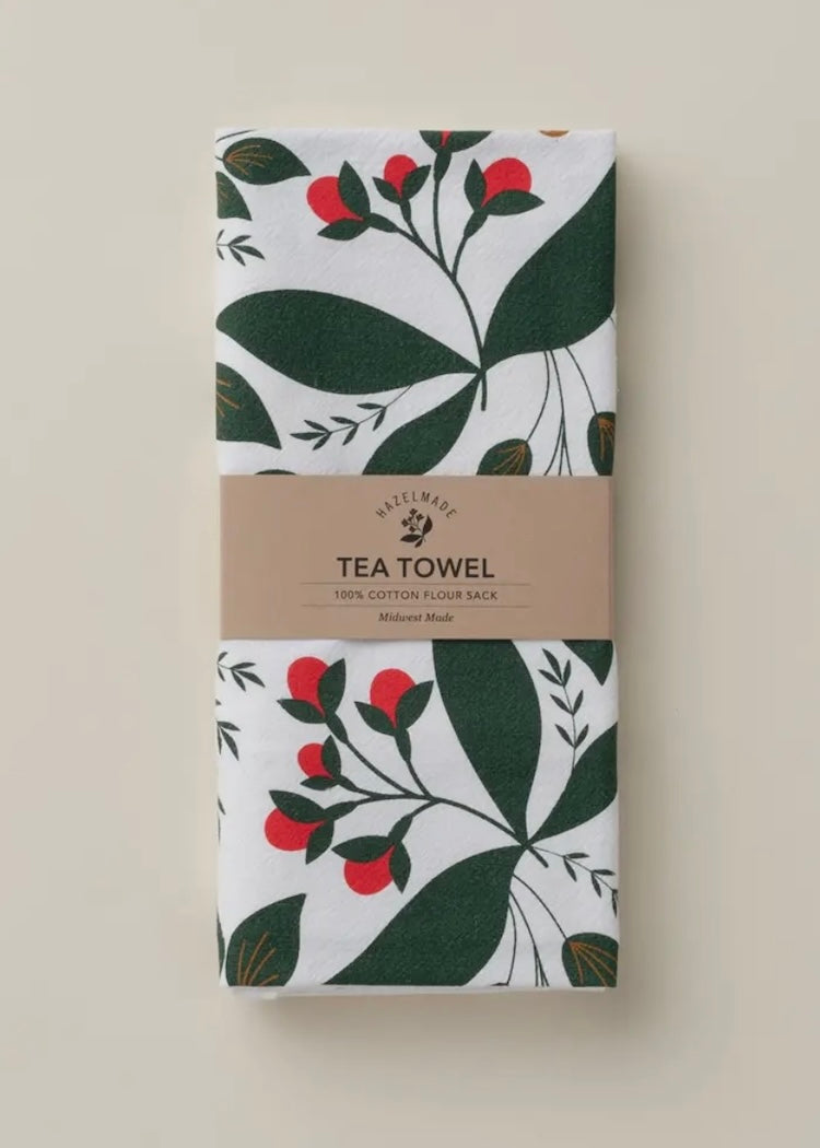 All Hazelmade products from start to finish are Midwest made with USA sourced materials. The products feature original illustrations hand-drawn by the artist, Susan Hazel Rich. This artwork is carefully screen printed with the highest quality inks and heat set for lasting durability. Each tea towel is hand-sewn in the Midwest using the finest 100% cotton fabric and a thoughtful pattern design which reduces waste.