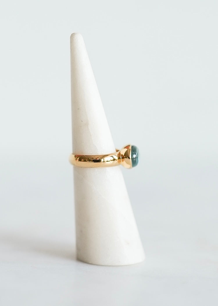 These earrings measure approximately 1.0" long by 5/8" wide and feature a single gold ring anchored by a sterling silver connector. The balance of form and function is intentional —...