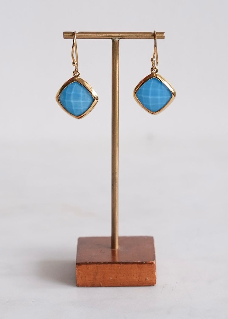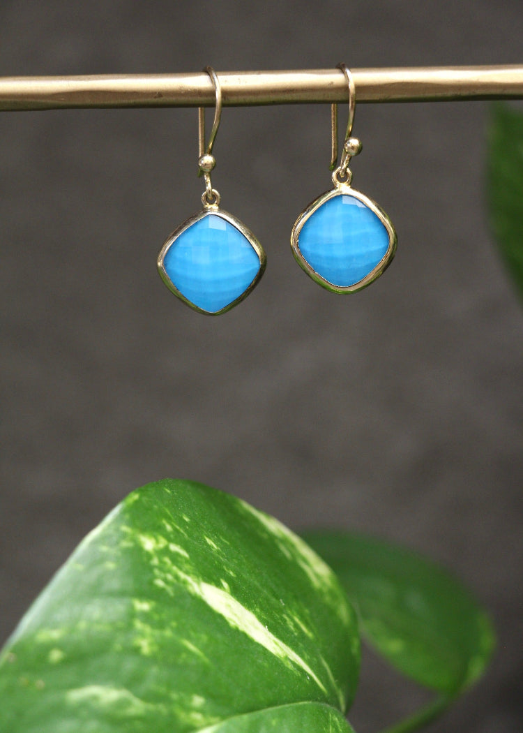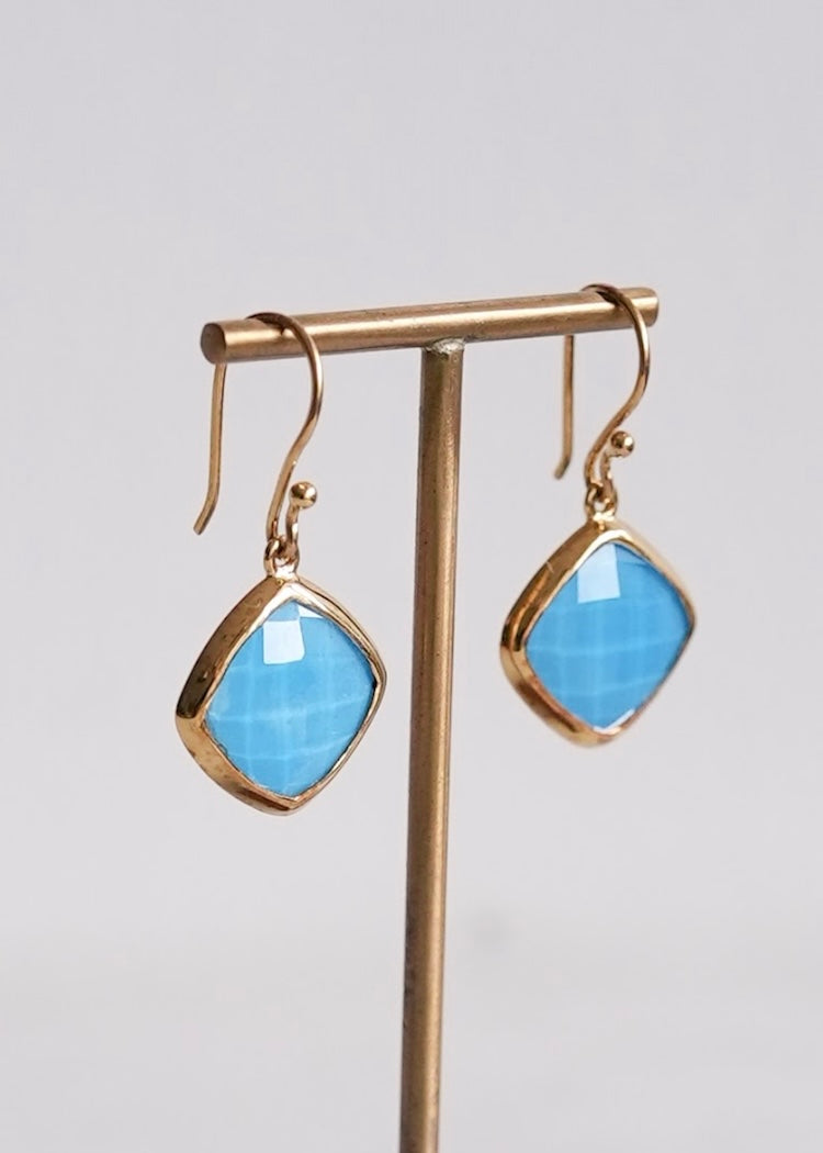 Artifact Bronze Earring with Kyanite gemstone on gold-filled post. Inspired by Ancient jewelry making techniques. Julie uses a special finish on her bronze pieces, which protects them from tarnishing and discoloring...