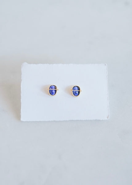 Oval spinel studs with an open back. Materials | Steely blue spinel, 14k yellow gold | 5mm x 4mm Handmade in Concord, California Style Code | MREAS343 Shop All...