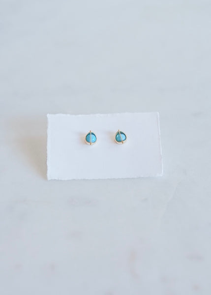 Teeny tiny vintage Persian turquoise beads are snuggled up together in a 18k gold box. The perfect everyday stud earring that looks great in your first, second, or third...