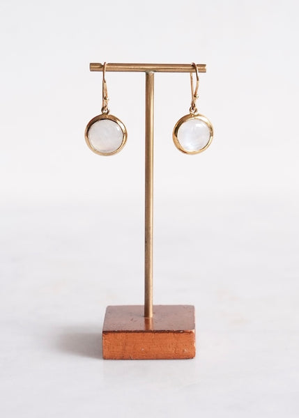 A simple staple, the Bia Earrings feature vintage textured brass rings with hand-cut gemstones. Material | Artisan-cut natural gemstones, recycled vintage brass, 14k gold-fill ear wire Length | 1.25" Handmade...