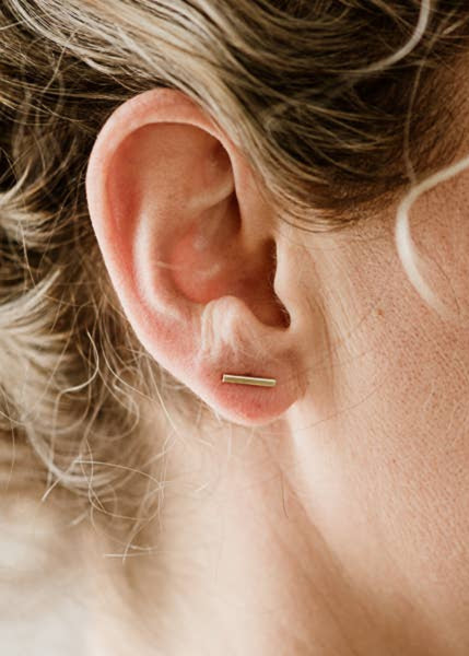 Small, 12mm brass bars on sterling silver stud posts. Material | Brass, sterling silver stud Size | 12mm Handcrafted in Bozeman, MT Style Code | CF-HORIZONST Shop All ↠ commonform