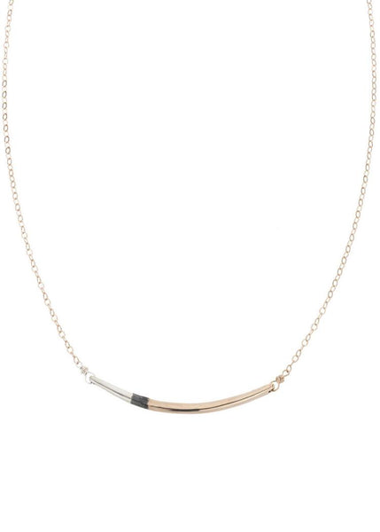 We love this necklace, with its pristine silver, rustic oxidized silver, and yellow gold color combination. Material | 14k Gold-fill (14k Gold over Brass core/no Nickel) + Oxidized Sterling Silver +...