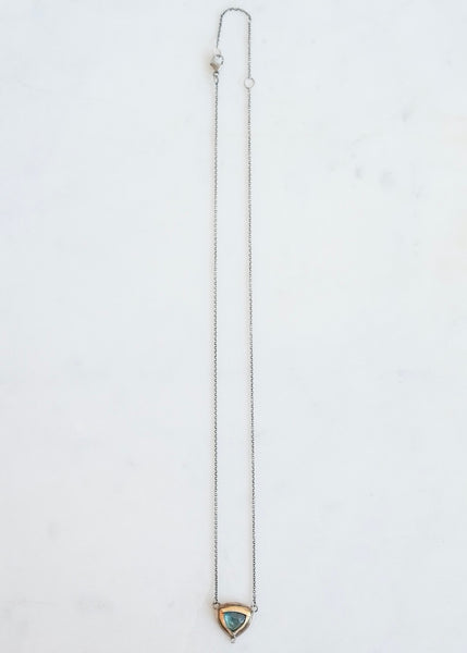 Material | Kyanite, diamond, oxidized silver chain Chain Length | 16-18" (adjustable) Pendant Length | 0.5" Made in Richmond, Virginia Style Code | NS/24TRIFOLD2 Shop All ↠ Austin Titus