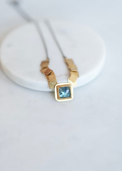 Material | Teal kyanite, 18k gold vermeil, oxidized silver chain Length | 16-18" (adjustable) Made in Richmond, Virginia Style Code | NS/GSQPV Shop All ↠ Austin Titus