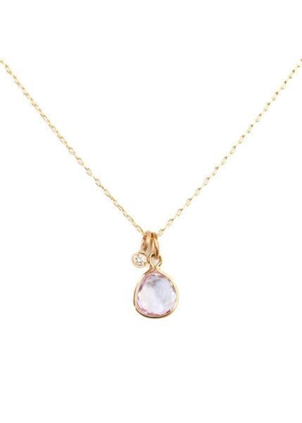 Pink sapphire, rose cut diamond trio pendant and a brilliant cut diamond charm necklace. 14k cable chain and lobster clasp. *Please note: this item is part of our Trunk Show...