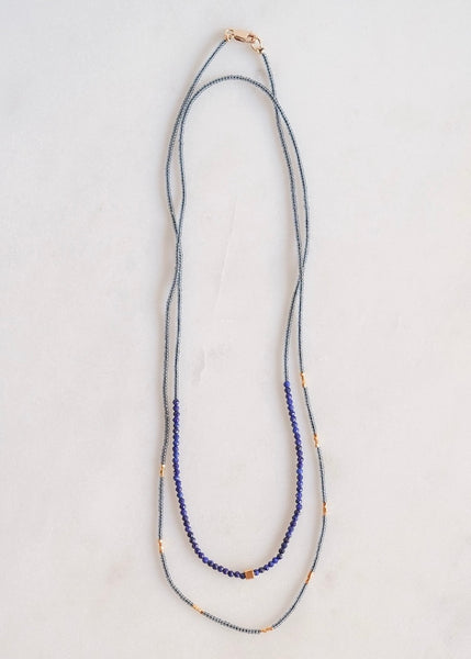 Material | Lapis, Gold Vermeil, and Seed Beads Length | 30" (undoubled) Handmade in Brooklyn, NY Style Code | MDN41 Shop All ↠ Debbie Fisher