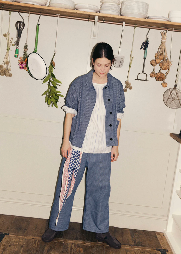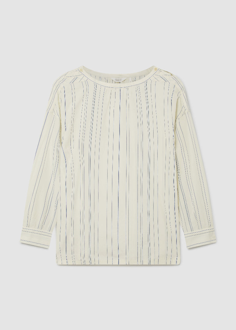 Gathers at the neckline and cuffs of the irregular-striped smock top create a sense of volume. Crafted from organic cotton with a corozo button at the neck and gussets under the arms for ease of wear.