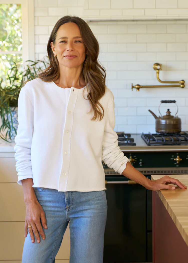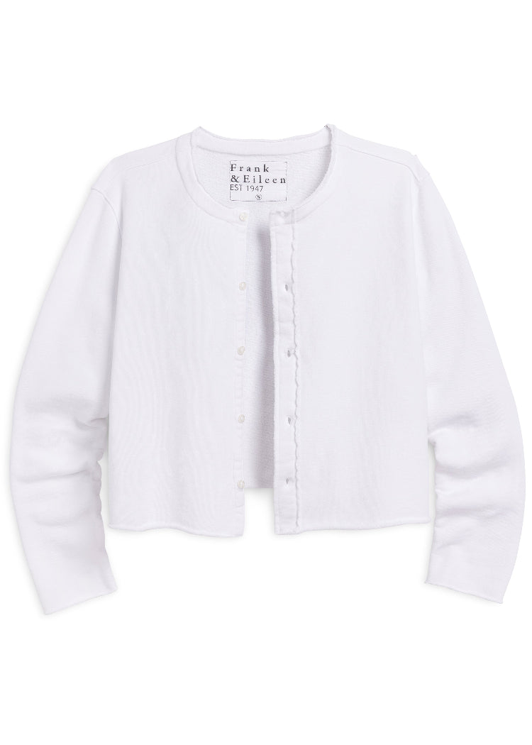 This sophisticated style has all the hallmarks of a forever classic cardigan with a few F&E twists. The perfect mix of feminine and functional, Jackie features a petite, square-ish silhouette, delicate buttons, and our signature raw edge hem in soft, cozy Triple Fleece.