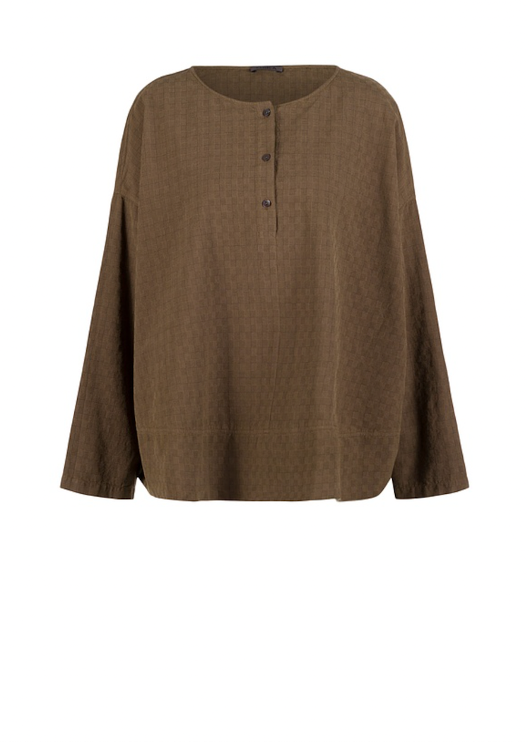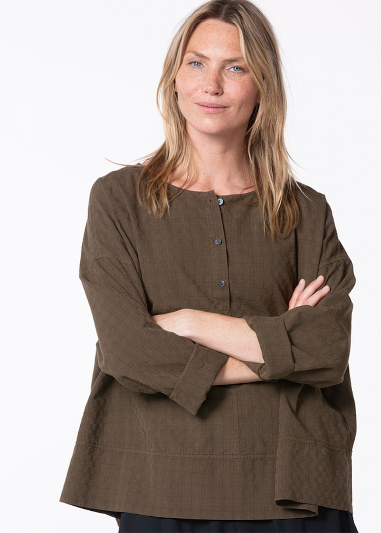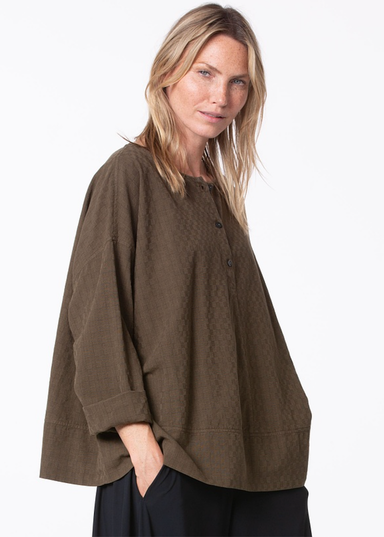 Effortlessly chic and timeless, the Oska Shirt in Ivy is a wardrobe staple you’ll reach for again and again. Crafted from 100% pure cotton, this blouse features a delicate two-color, subtle dobby pattern that exudes understated elegance. With a boat neckline and a small polo placket with buttons at the front, this shirt offers a minimalist yet refined design that complements a variety of styles.