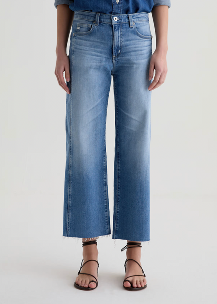 The Saige Wide-Leg Crop is a mid-rise jean crafted from comfort-stretch denim. Designed to sit comfortably at the waist, this AG-ed™ denim has vintage raw hems and an AG-ed wash...