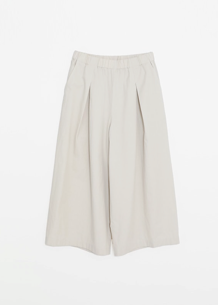 These pants are made from crisp cotton fabric that has been processed to give it a soft, washed-out feel. The three-dimensional silhouette does not cling to the body, creating a tranquil and dignified shape.