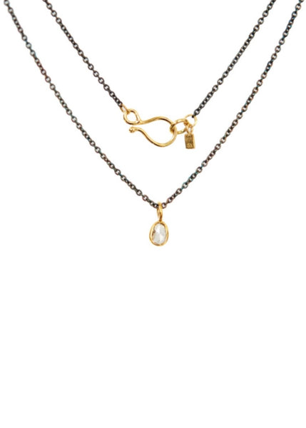 18K rose cut diamond charm on an oxidized sterling chain. 18k handcrafted clasp. *Please note: this item is part of our Trunk Show Collection and will ship directly from the Monica...