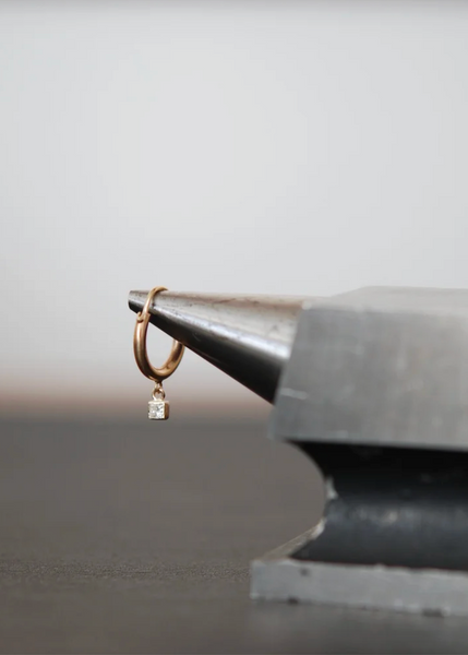 Handmade hoops with click closure and square box diamonds. *Please note: this item is part of our Trunk Show Collection and will ship directly from the Monica Riley Studio in San...