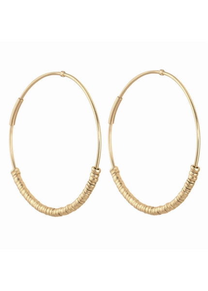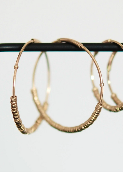 Elegant day-to-night hoops. Beads move freely within a portion of the hoop. 14k gold. Handcrafted. *Please note: this item is part of our Trunk Show Collection and will ship directly...