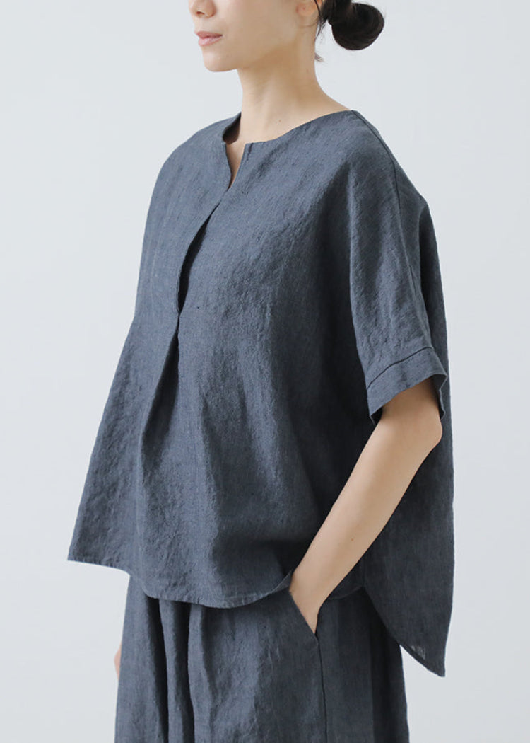 Blue-toned threads give this chambray fabric depth of colors such as dove grey, blue, and navy, both warp and weft. It offers a casual feel reminiscent of denim fabric, while pairing with inner layers lends a certain refined impression.