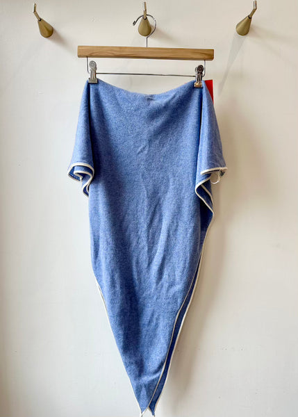 This scarf is a beautiful navy shade, accented by an elegant light grey trim. Material | 100% Cashmere Care | Hand wash Elongated rhombus shape Size | 51" x 17.7"...