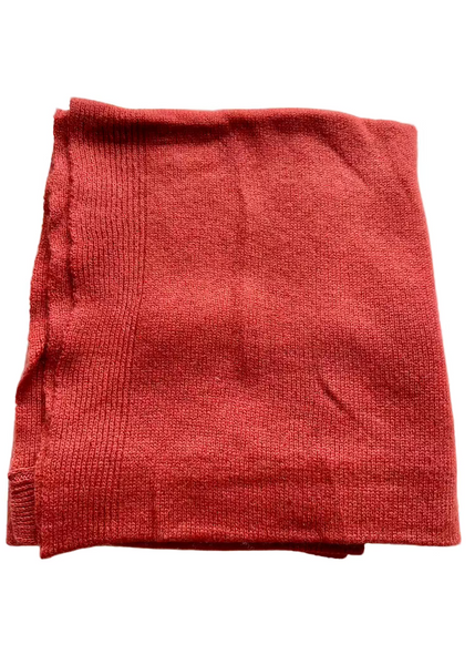 This scarf is a bright reddish orange shade, accented by a cheery teal trim. Material | 100% Cashmere Care | Hand wash Elongated rhombus shape Size | 51" x 17.7"...