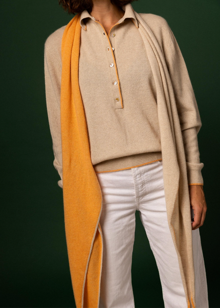 This gold has more light than a lighthouse! This Mongolian cashmere is cut as if the rules didn't apply to it. It's that shade that makes even Monday morning look...
