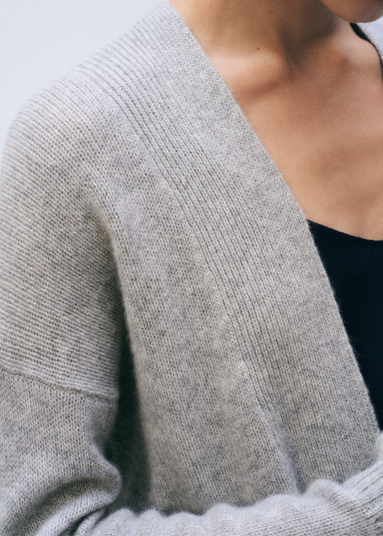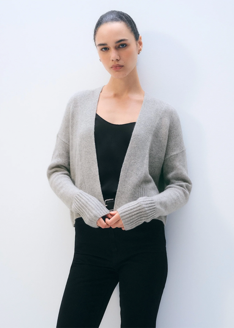 Meet your new favorite layer: the Cashmere Open-Front Cardigan. Crafted from featherweight two-ply cashmere, it delivers luxurious softness and warmth without bulk. A shrunken fit that hits at the mid-hip creates a sleek and flattering silhouette, while wider rib finishes at the cuffs and hem add a refined, textured touch. Versatile and chic, the open-front design ensures effortless styling over tees, dresses, or blouses.