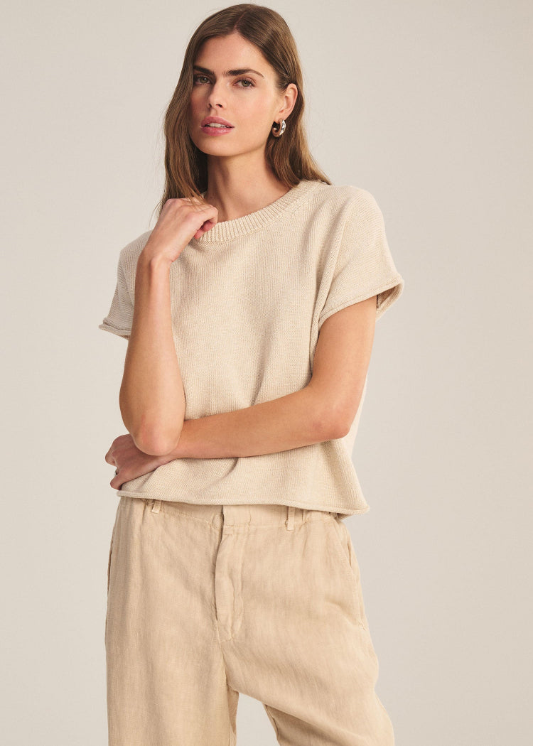 Crafted from soft cotton-cashmere for light warmth, this cropped sweater is a cozy essential. Featuring a boxy silhouette, short sleeves, crew ribbed neckline, and rolled cuffs and hem, it blends relaxed ease with subtle detail. It’s a versatile, elevated knit for any wardrobe.