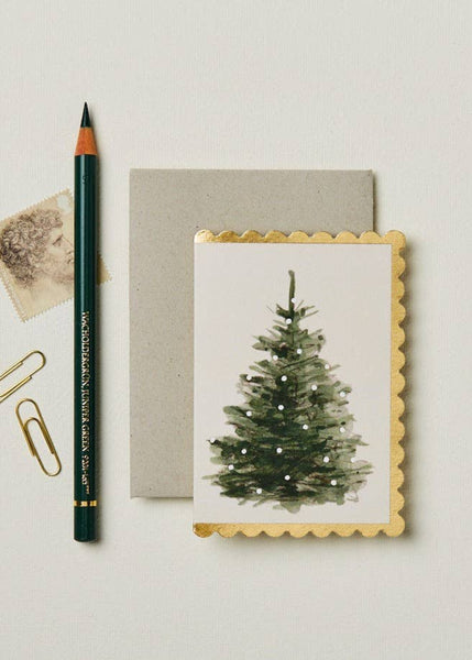 This special Christmas card brings together a painterly botanical print, scalloped edges and gold foil detailing. Paired with a luxury pale grey envelope. Includes envelope Designed and packed with care...