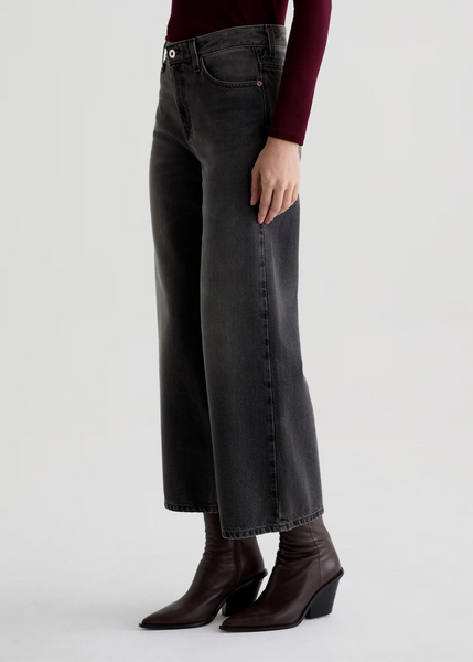 The Saige Wide Leg Crop is a mid-rise fit jean. Crafted from 11.25 oz. Organic Black Rigid Denim in a washed black hue. Designed with classic five-pocket styling and premium construction...