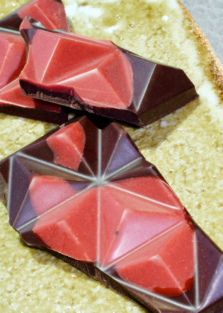 Sweet and tart notes of strawberry chocolate pair perfectly with well-balanced 70% dark chocolate in this velvety bite. Each piece is carefully hand-crafted and will no two will be identical.