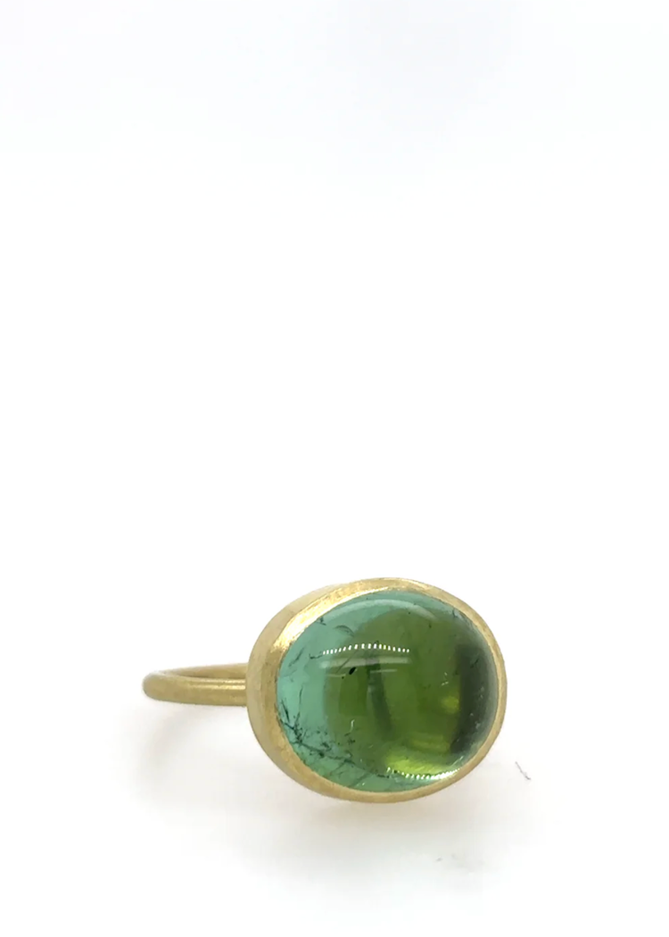 This green tourmaline has such interesting inclusions and looks spectacular set in 18K green gold that has Judi's signature Cashmere Finish®.