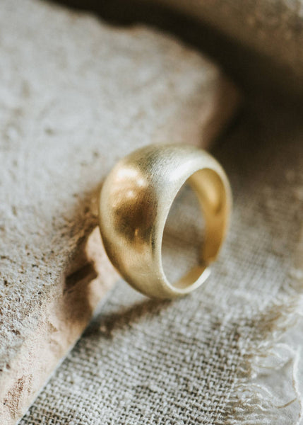 The Luna Dome Ring from Commonform is a unique statement piece. Ethically sourced and individually crafted, this ring features a single stone solitaire set in solid brass. The yellow gold...