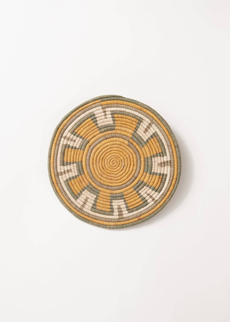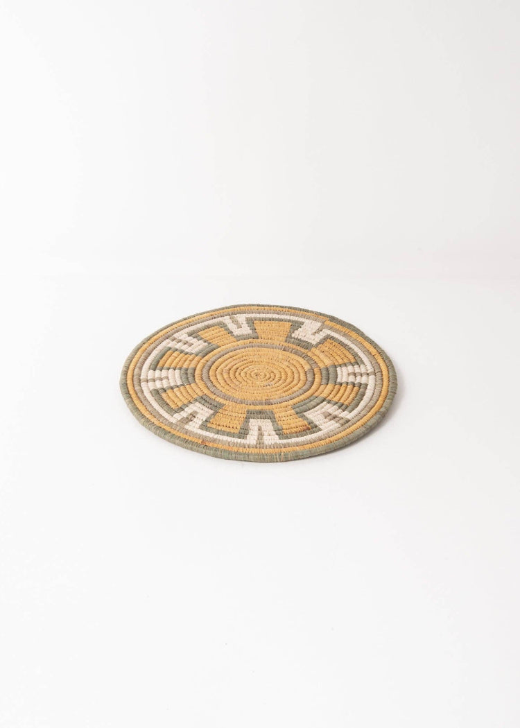 Add another useful statement piece to your table top - Use this handcrafted trivet to protect your furniture and display your home cooked goodness. Handwoven in a the rich color palette.